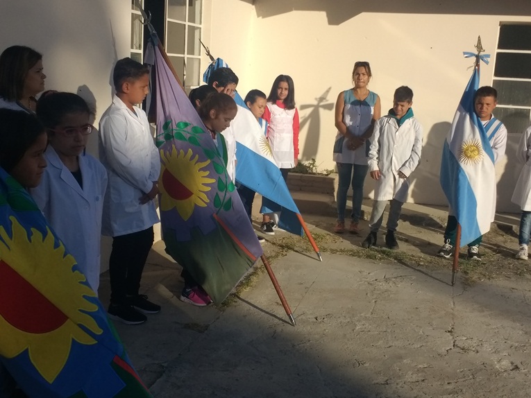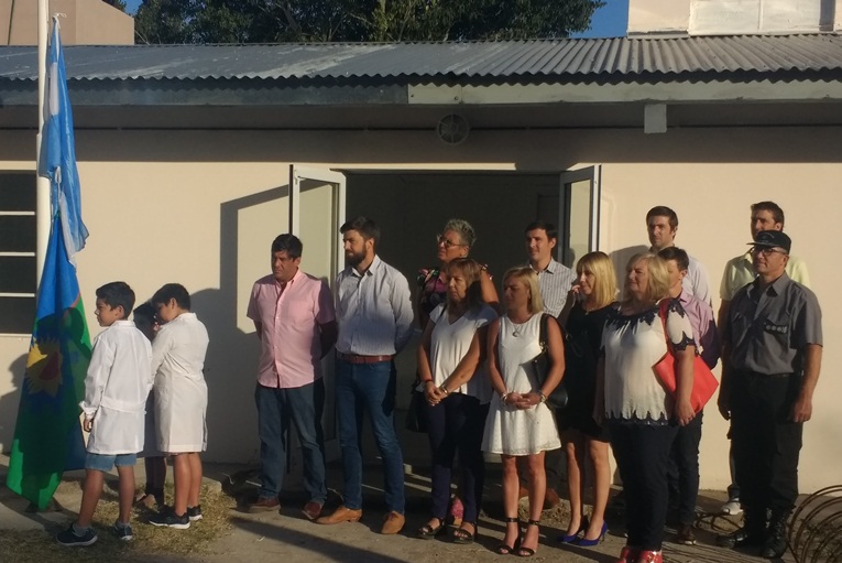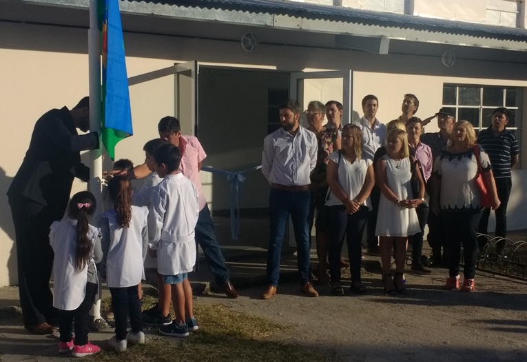 Tras la entrada de las banderas de ceremonia entonaron el Himno Nacional y Galli procedió a izar la bandera junto a los niños. Luego llegaron las palabras de agradecimiento a todos aquellos que colaboraron e hicieron posible que los alumnos y los docentes volvieran a las aulas de esta escuela.