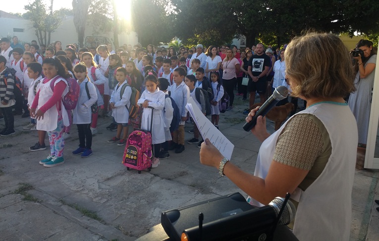 A primera hora de la mañana de hoy, en un patio colmado de niños, familias y docentes, la directora de la Escuela recibió a toda la comunidad en una escuela renovada. El edificio tiene más de 50 años y presentaba importantes deficiencias en materia de infraestructura, un reclamo que data de hace 17 años en la institución que cuenta con una matrícula de 150 chicos.