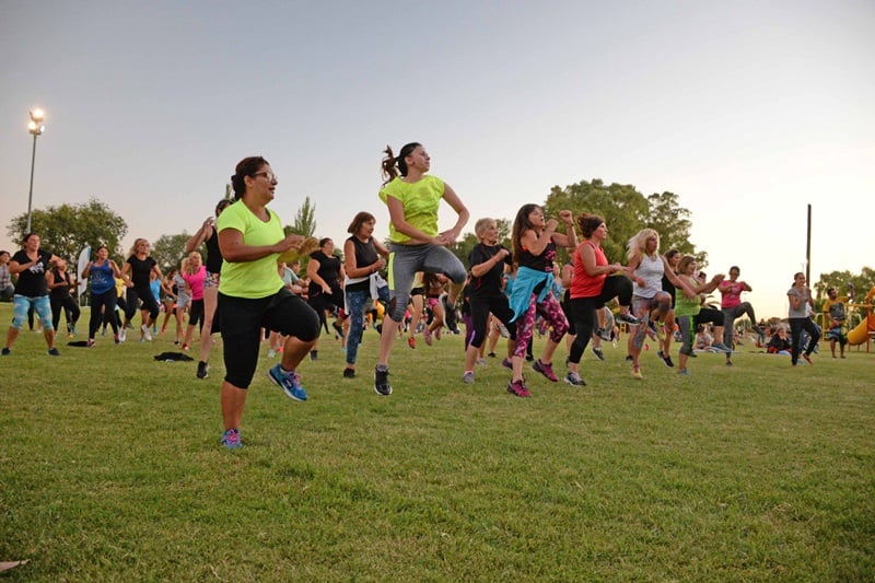 En los parques, las profesoras del staff de Deportes prepararon distintas clases de zumba, gimnasia localizada, aeróbica y bailes de diferentes ritmos, incluyendo a los distintos grupos de edad.