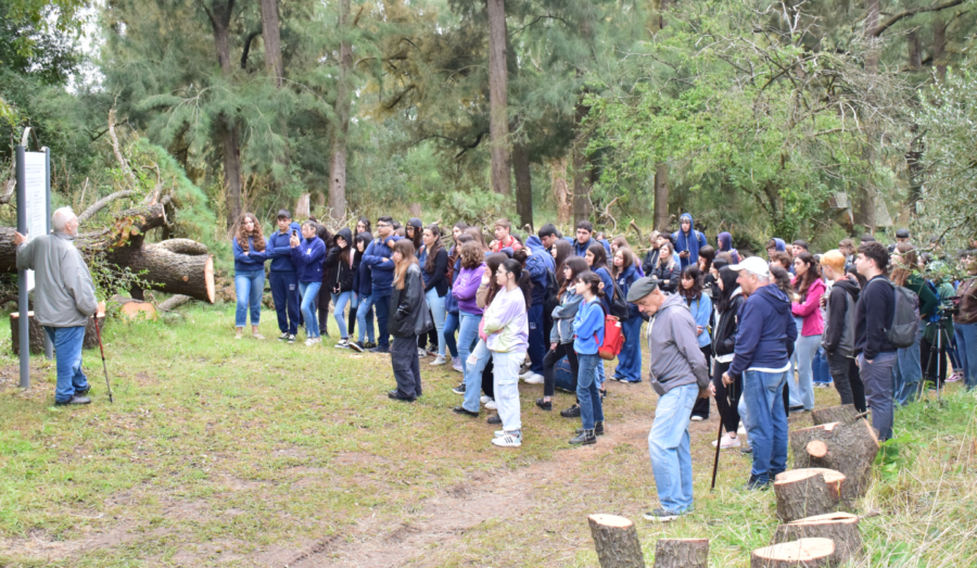 En la visita, mientras realizaban la recorrida desde el acceso al monte hasta la casona guiados por la cartelería del Sendero de interpretación, los integrantes de la Comisión por la Memoria describieron qué fue lo que sucedió en este espacio hace más de 40 años, tanto a nivel nacional como en la Provincia y el país, y particularmente sobre sus historias personales.