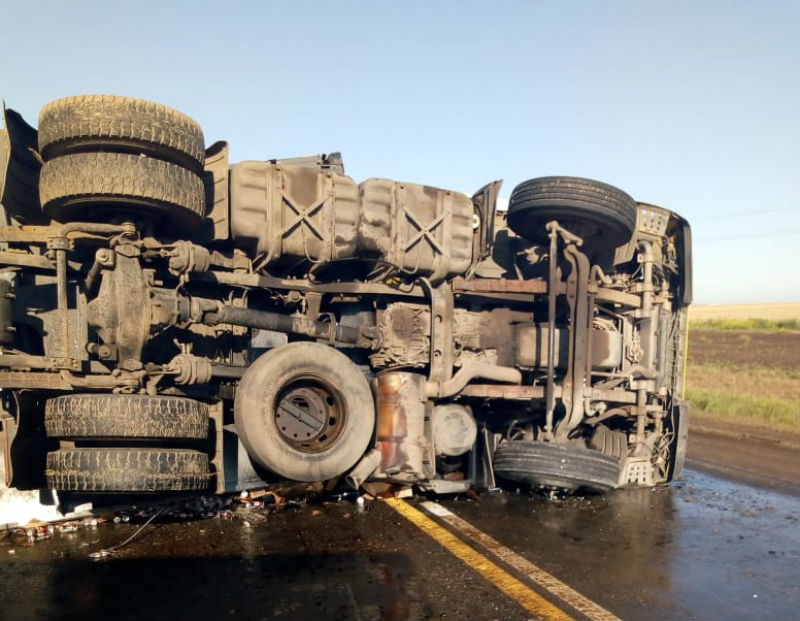 El vuelco se produce en el Km 566, a unos 29 Km de la localidad de Dorrego, en medio de un fuerte temporal que azotaba la zona.