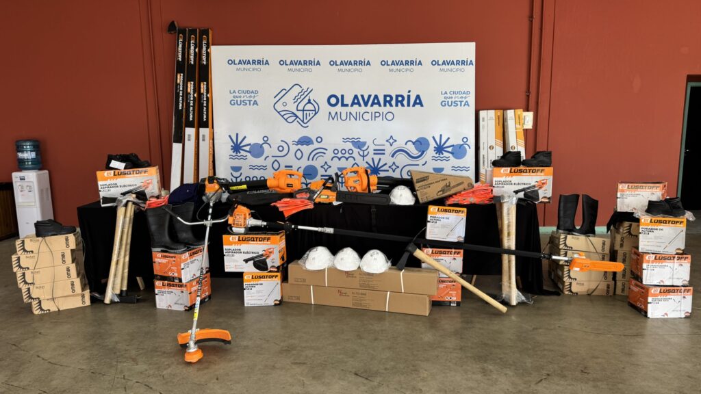 En la oportunidad se entregaron 2 motosierras, 3 podadoras de altura, 7 desmalezadoras, 5 sopladores de hojas, botas de goma, botines de seguridad, cascos, lentes de seguridad, chalecos refractarios, guantes, tubos LED, picos y hachas reforzadas, elementos que se gestionaron en el marco del Proyecto de Gestión de Riesgos ante Emergencias Climáticas del Ministerio de