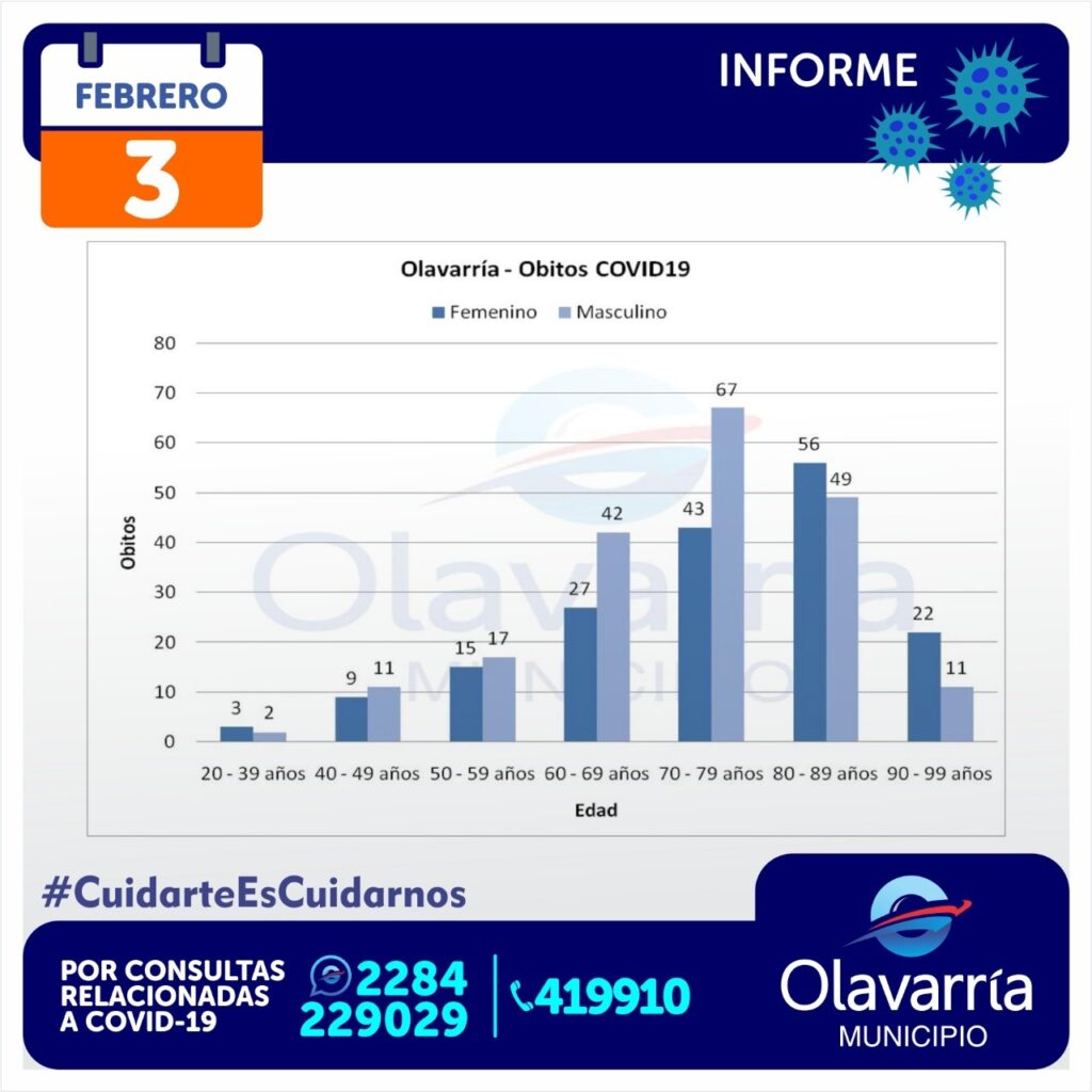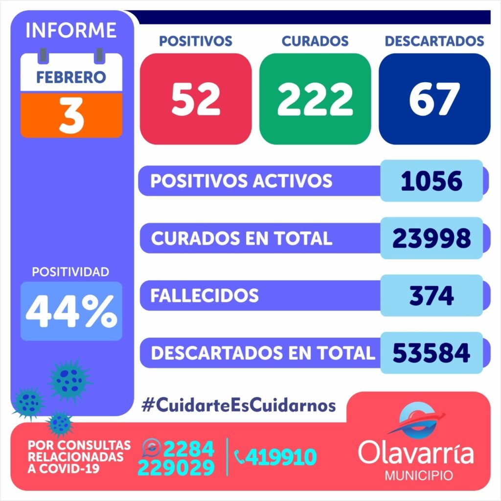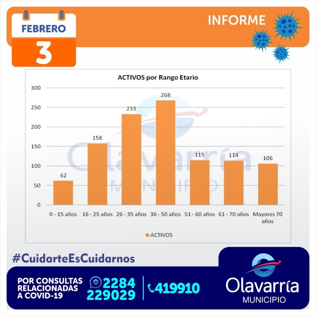 222 personas recibieron el alta médica, por lo que actualmente son 1056 los pacientes activos en Olavarría, con una edad promedio de 42 años.