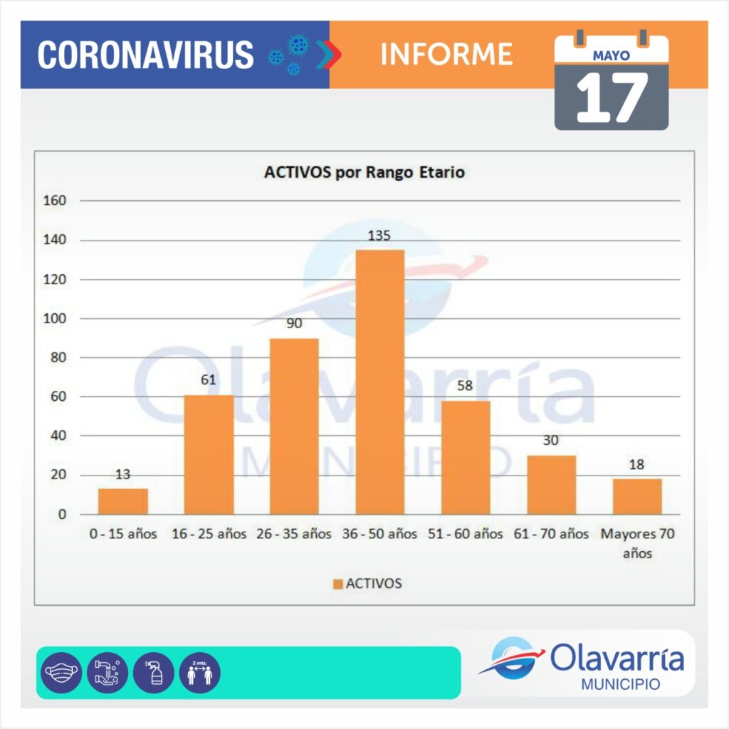 En la fecha de hoy 17 de mayo se registraron 82 casos positivos, 46 altas médicas y 165 descartados.