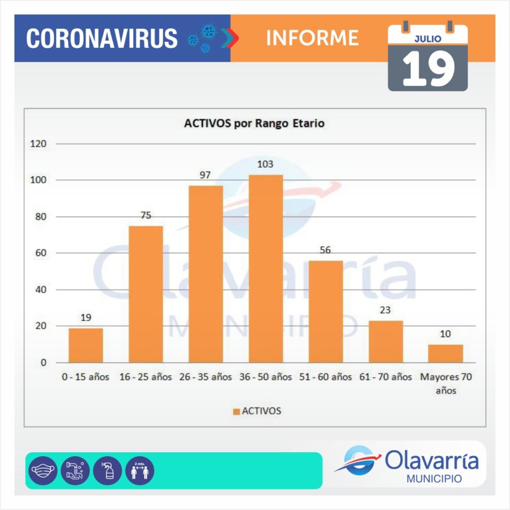 En la fecha de hoy 19 de julio se registraron 43 casos positivos, 13 altas médicas y 187 descartados.