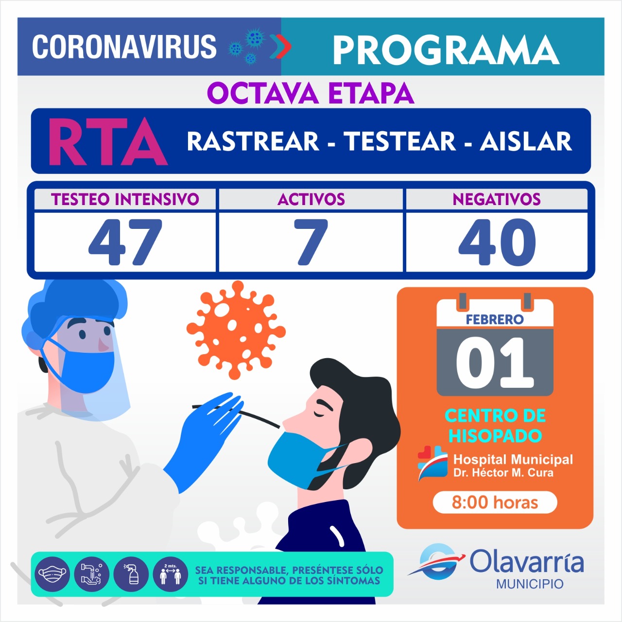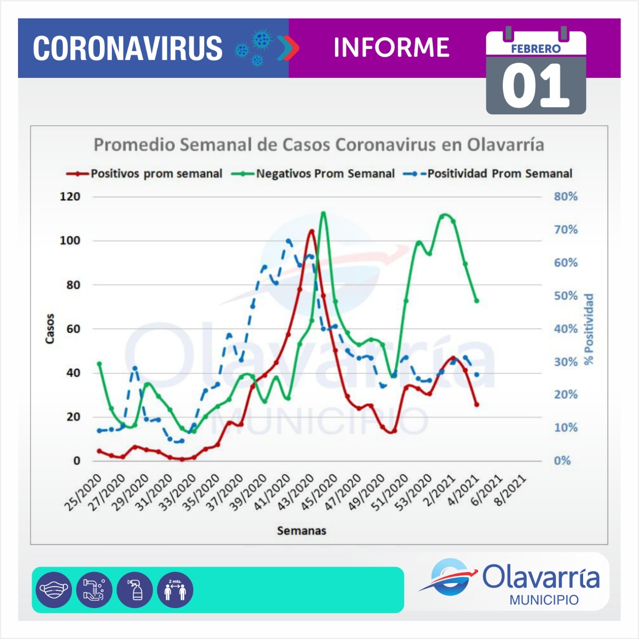 En la fecha de hoy 1 de febrero se registraron 28 casos positivos, 5 altas médicas y 85 descartados.