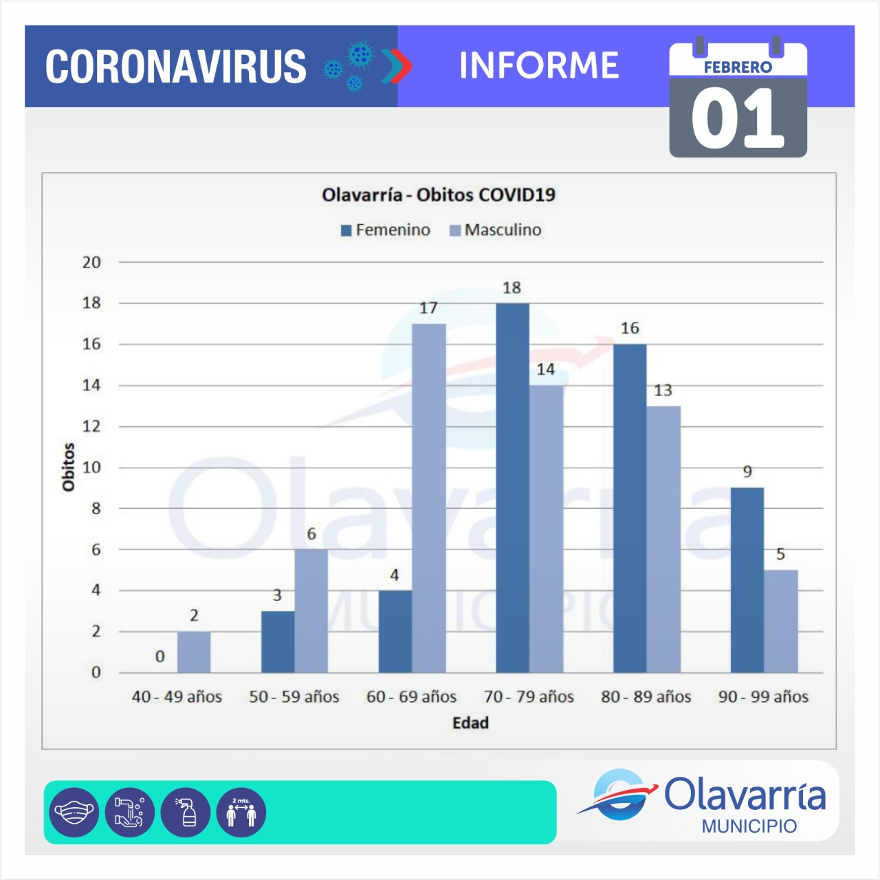 La Secretaría de Salud del Municipio emitió el informe epidemiológico correspondiente a este día lunes 1° de febrero. Un hombre de 67 años, que estaba internado desde hacía 15 días, falleció en el Hospital Municipal.