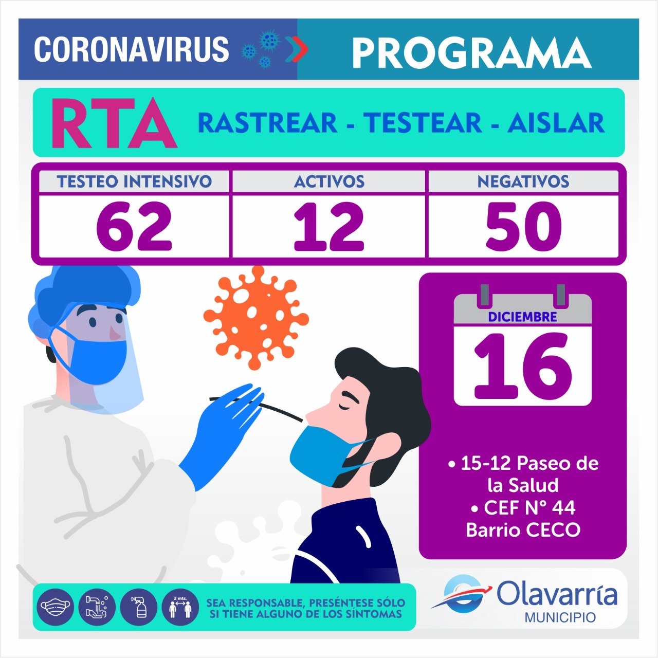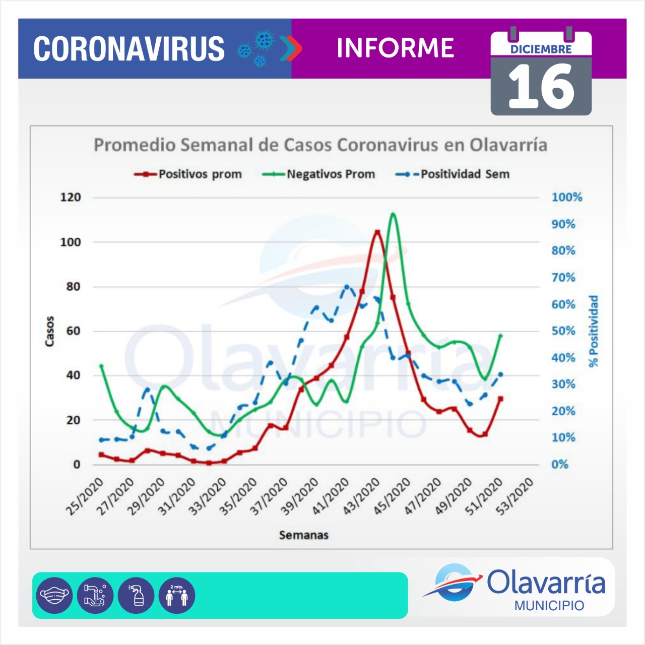 En la fecha de hoy 16 de diciembre se registraron 51 casos positivos, 8 altas médicas y 99 descartados.