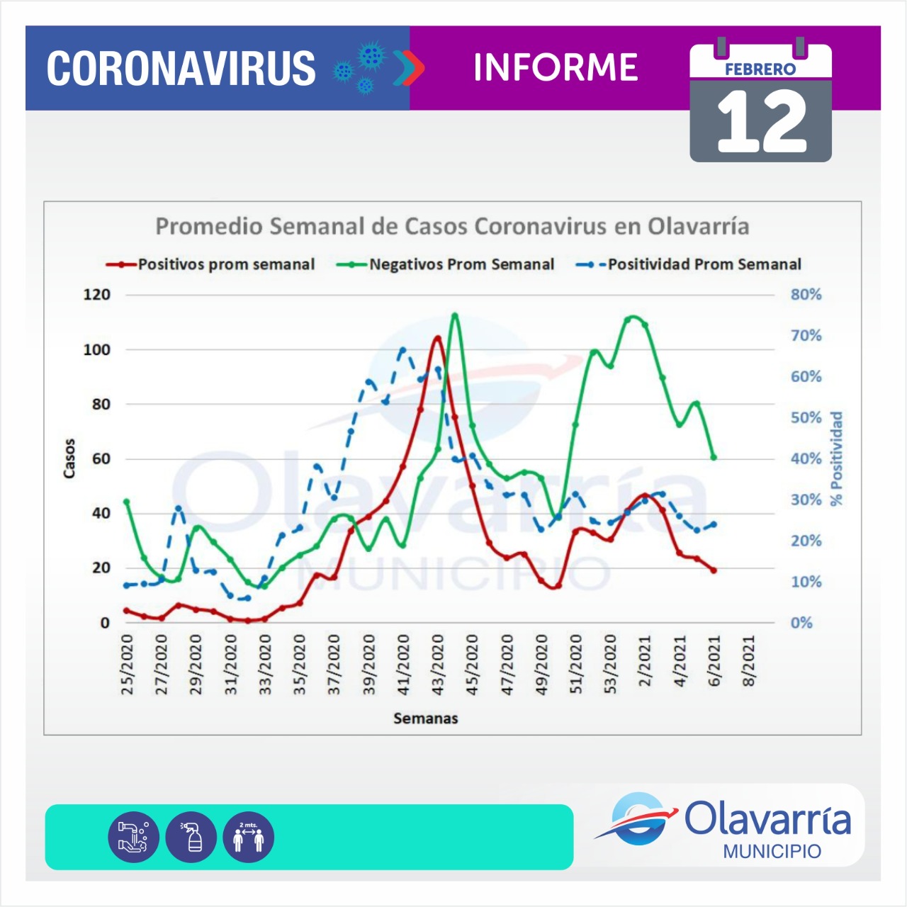 En el día de hoy 12 de febrero se registraron 32 casos positivos, 25 altas médicas y 69 descartados.