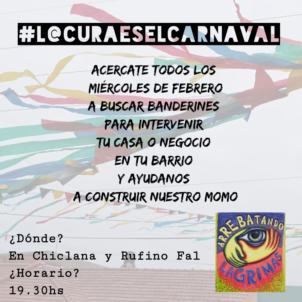 Invitan a participar de un carnaval distinto en pandemia. Llego febrero, y el carnaval este año será distinto. La murga arrebatándo lágrimas construye el carnaval hace 21 años, «nos tocó hacer que la fiesta popular vuelva a renacer en la ciudad, nos tocó investigar sobre las raíces del carnaval Olavarriense para mantenerlas vivas en cada una de nuestras propuestas estéticas, nos tocó luchar para que se observe al carnaval como un derecho de participación y de gestión cultural del estado, nos tocó luchar para que los barrios volvieran a tener carnaval, luchamos el conjuntamente con otras agrupaciones carnavaleras para que deje de estar prohibido» ,mencionaron.