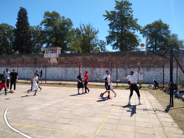A las tres de la tarde del lunes, la cancha de básquet de la Unidad 2 recibió a los jugadores con la Jefatura de la Unidad a pleno y los quince internos que participan del Taller de básquet que lleva adelante el Profesor del CEF N° 100, Héctor Burghini, con ansias de disfrutar básquet del bueno.