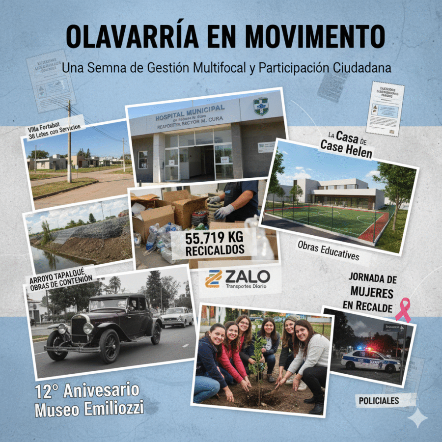 La semana que termina dejó una serie de hechos que marcaron el pulso de Olavarría en múltiples frentes. Desde la planificación urbana y la salud pública hasta el reciclaje, la educación, la seguridad y el contexto electoral nacional, la agenda se movió con fuerza y dejó señales claras de gestión, participación y tensión social.