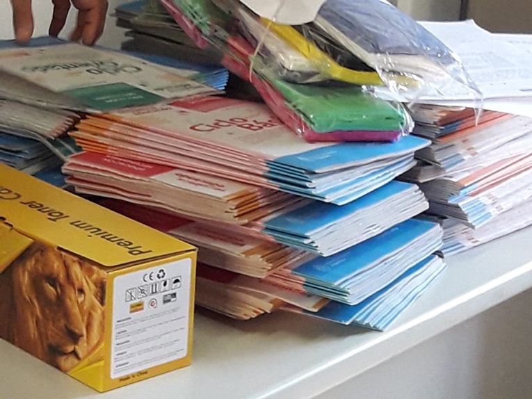 Se trata de cuadernillos de estudio procedentes de la Dirección General de Cultura y Educación de la provincia de Buenos Aires, que fueron distribuidos a los directivos de cada nivel por el profesor Alejandro Luján, Delegado de Cultura y Deportes del Complejo. Estos llegarán a las manos de los más de 1300 alumnos que este año se anotaron para continuar sus estudios en las Unidades 2, 27 y 38 de Sierra Chica y 17 de Urdampilleta.