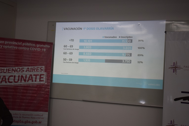 «Respecto a personas vacunadas mayores de 60, hay 10101 personas lo que equivale a 38% del total de vacunados y entre 60 y 69, 8660 personas que es el 33% de los vacunados, entre el 50 y 59 hay 2951 y entre 18 y 49 18% de vacunados, (se incluyen al personal de salud y docentes que en su momento fue el objetivo para vacunar».