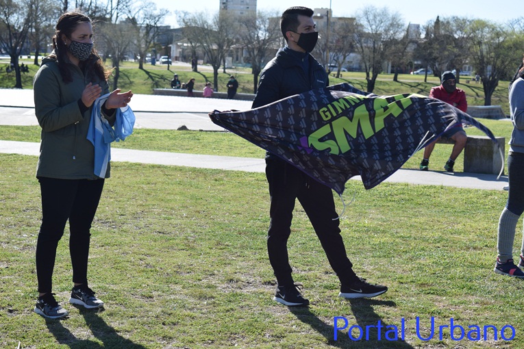 En la jornada de este domingo, diferentes centros de actividad física y gimnasios se concentraron en el Paseo Jesús Mendía. La movilización fue a raíz de que ayer, el Intendente de nuestra ciudad, mencionara que Olavarría vuelve a fase 4 y una de las actividades que no se encuentra habilitada en la misma son los gimnasios.