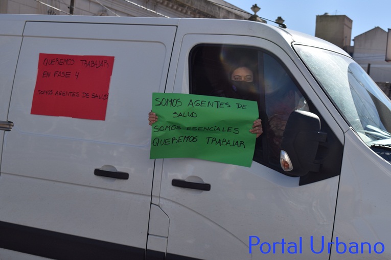 La entidad convocó a la marcha bajo el lema «lo único que contagiamos es salud» y «queremos trabajar». La movilización comenzó en el paseo jesús mendía finalizando en Avenida Del Valle y Brown.