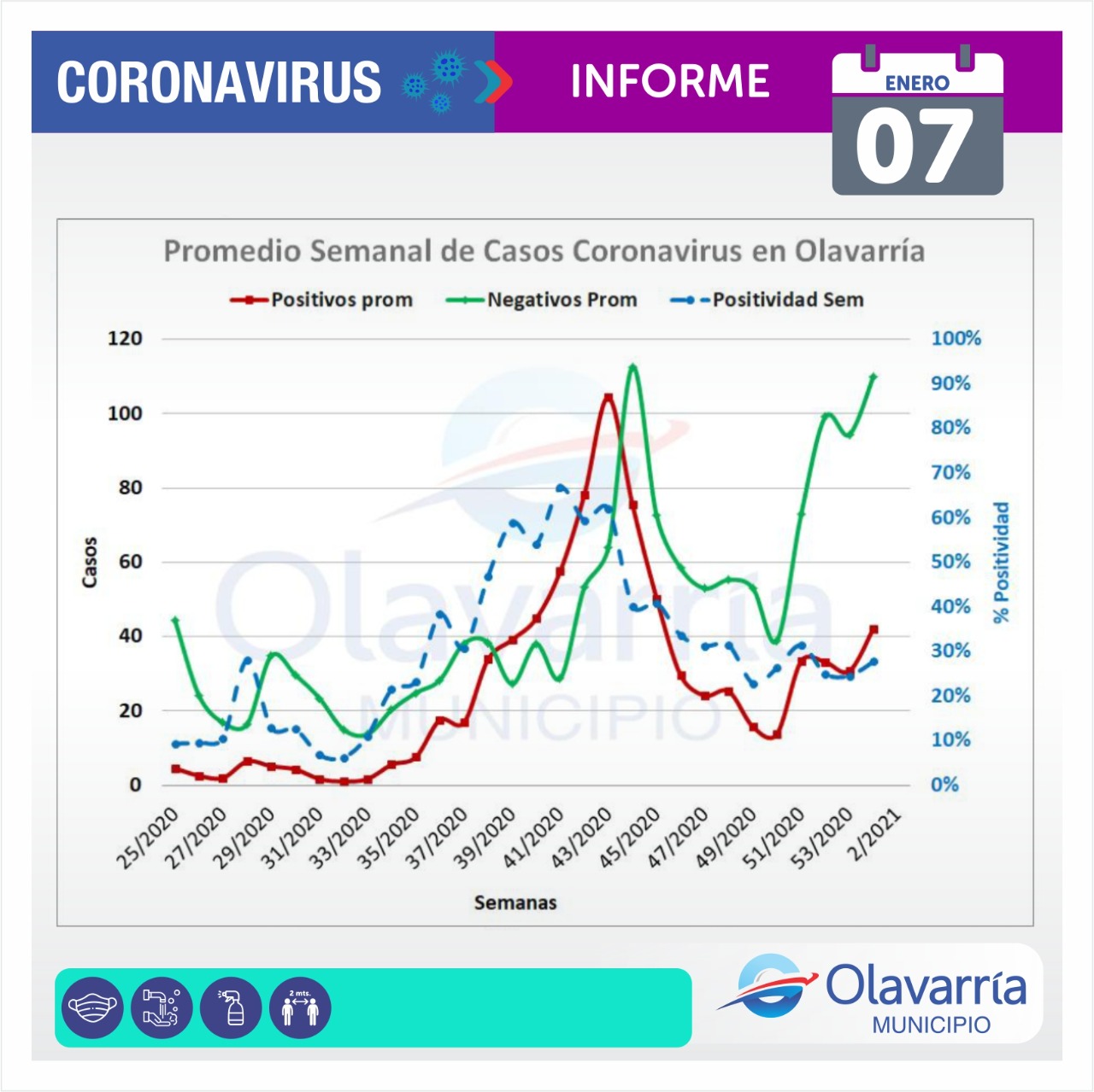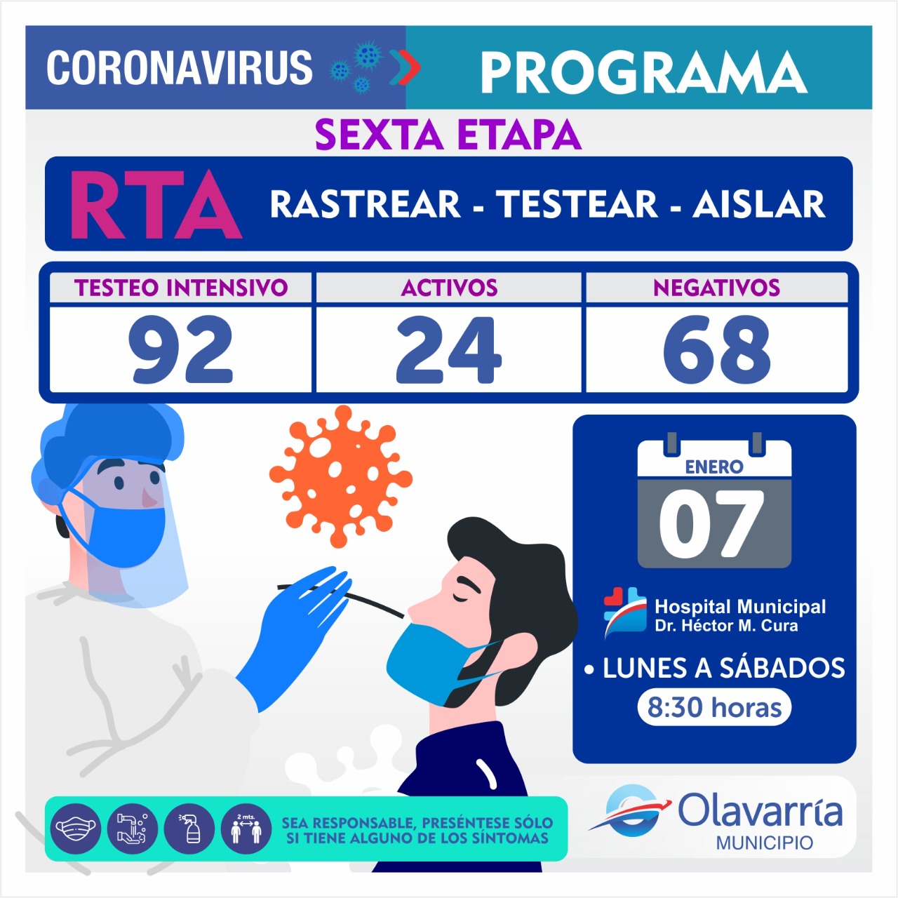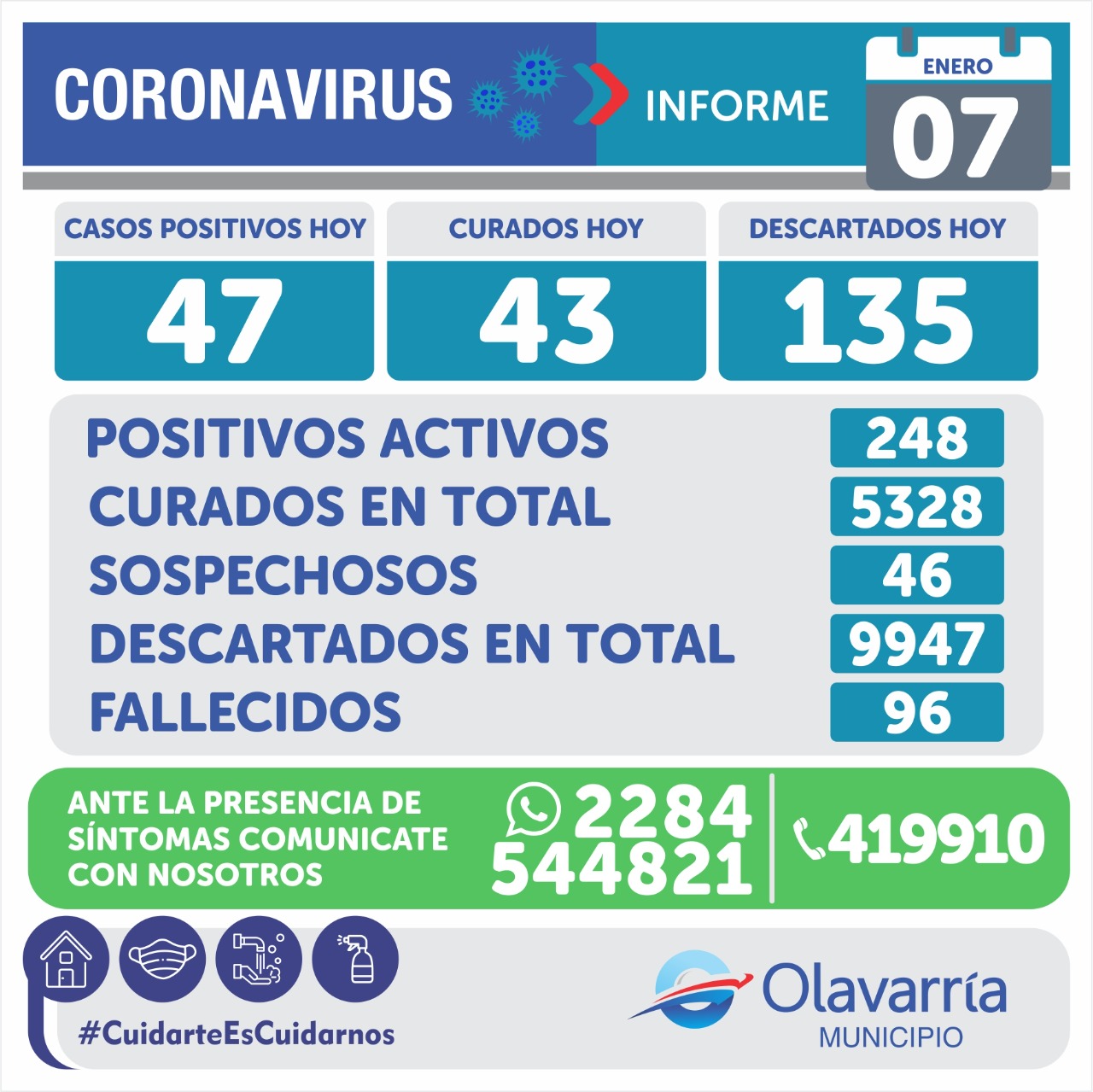 En la fecha de hoy 7 de enero se registraron 47 casos positivos, 43 altas médicas y 135 descartados.