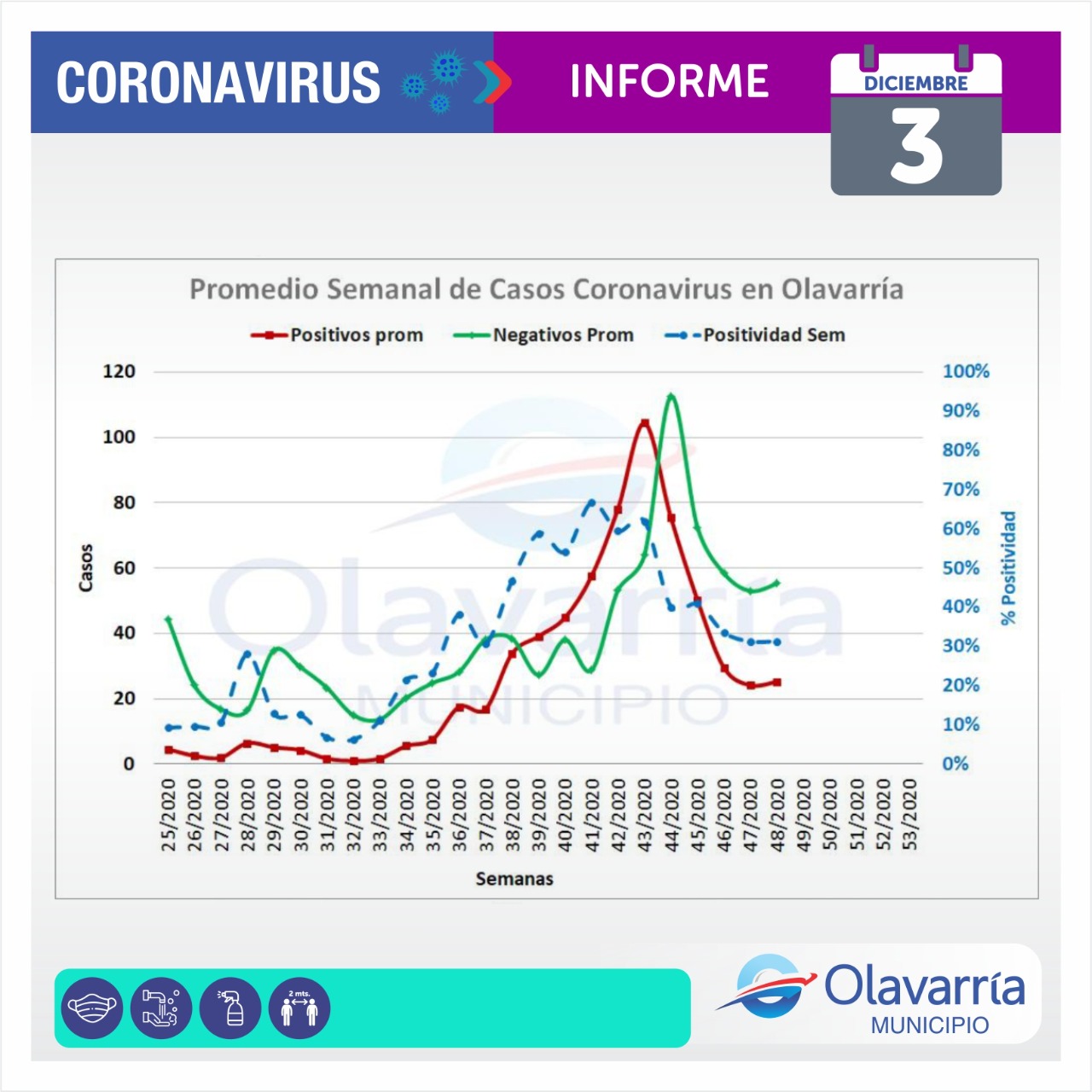 En la fecha de hoy 3 de diciembre se registraron 9 casos positivos, 28 altas médicas y 45 descartados.