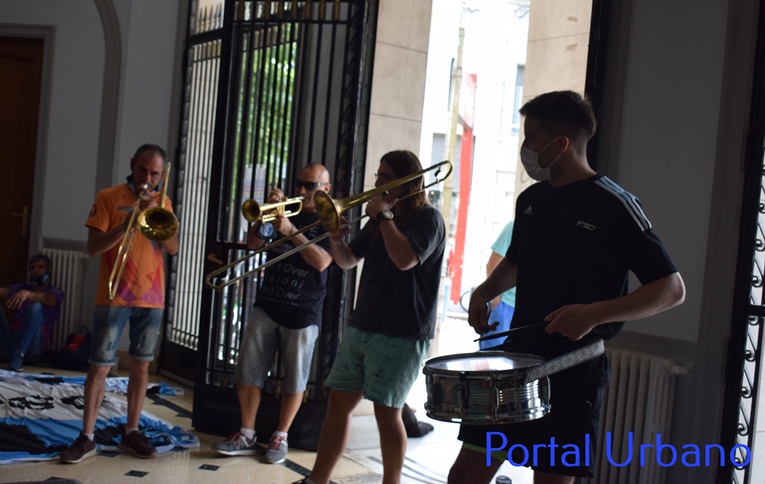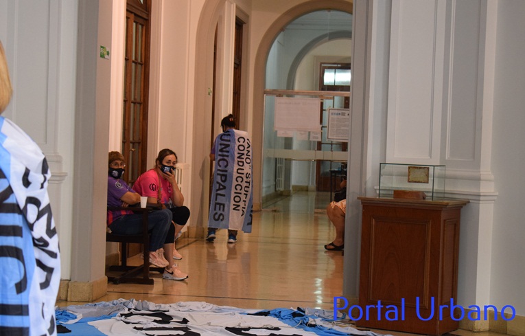 En la jornada de este lunes el Sindicato de trabajadores Municipales, encabezado por Jose Stuppia realizo una protesta en el hall del Palacio Municipal, por reclamos salariales y la precarizacion laboral de los medicos de Olavarria, en el marco de la pandemia de coronavirus.